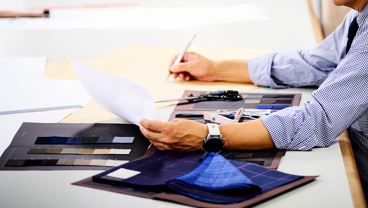 これを支えているのが、長きにわたって積み重ねられた型紙設計と工程設計。