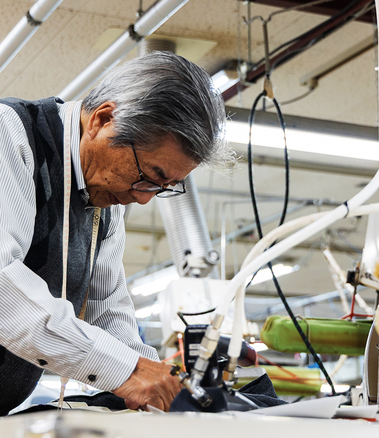 日本人の体型を知り尽くした熟練の手仕事と、独自開発の設備を通じて、妥協なく積み重ねられた工程が、穿いた瞬間に違いとして現れます。